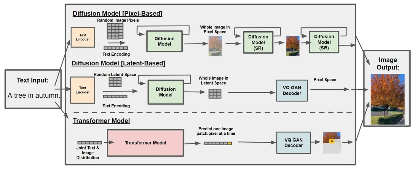 The researchers characterize and compare TTI and TTV models along two main architecture categories: diffusion models and transformer models.